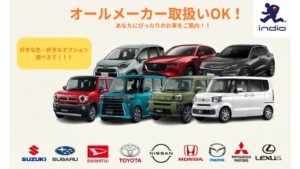 - 全メーカー選べる: 「あのメーカーのあの軽がいい」というご要望も、インディオならメーカーを問わず性能、金額を比較して選べます。
